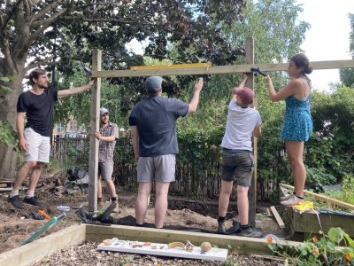 From 2024-5, we co-designed and built an accessible compost toilet for community garden visitors in Tower Hamlets. This project was funded by Just FACT, and is part of a borough wide network of people and projects, coming together to create the building blocks for an alternative food system that is democratic, environmentally sustainable, and people-driven.